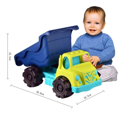 El Colossal Cruiser de B. toys es ideal para la playa, la sala de juegos, el arenero o su próximo viaje de campamento. Este gran camión volquete se desplaza suavemente sobre cualquier superficie y crea diseños únicos al rodar en la arena. Viene con un cuerpo verde y un volquete azul que es divertido de llenar y vaciar con agua o arena. ¡Incluso puedes llevar tus juguetes favoritos en una emocionante aventura! ¡Ningún camino es demasiado accidentado y ninguna carga es demasiado pesada! Fabricado con materiales seguros y de alta calidad, el Colossal Cruiser es ideal para enseñar a los niños la coordinación ojo-mano, desarrollar habilidades motoras finas y estimular la imaginación. Y como en B. tenemos en cuenta el medio ambiente, los padres también estarán felices de saber que nuestro embalaje es 100% reciclable. Recomendado para niños pequeños de 18 meses en adelante.