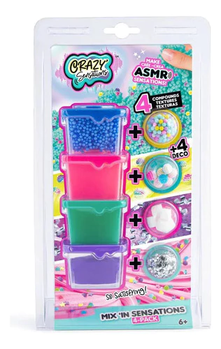 ¡Desata tu creatividad con MixIn Sensations! Este divertido set incluye cuatro paquetes únicos, cada uno con una textura y color diferentes, ideales para juegos sensoriales y experiencias creativas ilimitadas.