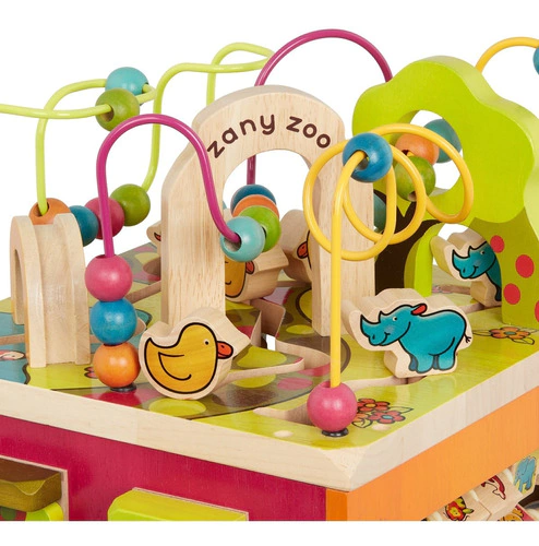 ¡Vive una aventura loopty-loo a través del Zany Zoo de B. toys! Este cubo de actividades de madera tiene todo lo que necesitan los amantes de los animales pequeños. Los niños pueden mover fácilmente las cuentas de colores a través de las pistas onduladas, abrir las puertas de peek-a-boo para descubrir sorpresas coloridas o aprender sobre todo tipo de animales haciendo girar las fichas ilustradas. ¡Este centro de actividades también cuenta con caminos en zigzag que permiten a los niños subir o bajar perillas inspiradas en animales! La construcción de madera es segura, suave y resistente, todas las características son fáciles de explorar para las manos pequeñas y las actividades ayudan a los niños pequeños a mejorar sus habilidades motoras finas, así como su coordinación ojo-mano. Recomendado para niños a partir de 12 meses.