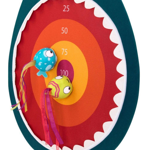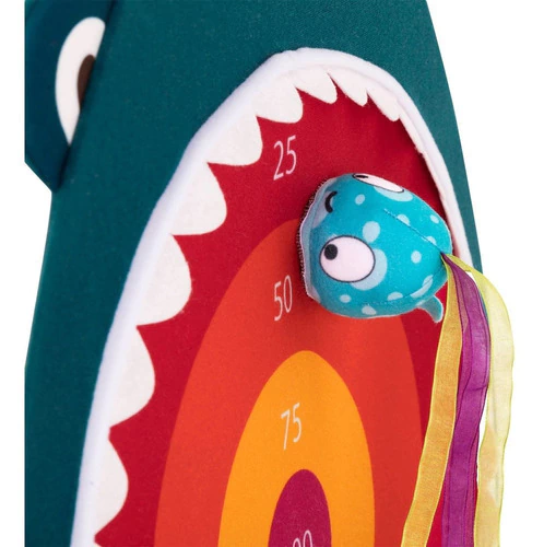 ¡Un juego increíble! Este juego de dardos Tiburon Velcro es un giro colorido en un verdadero clásico cuando se trata de juguetes al aire libre para niños pequeños. Este juego de tablero de dardos con velcro viene con 1 resistente panel de tiburón hecho de fieltro y 4 suaves bolas de velcro. A los niños pequeños les encantará el aspecto peculiar y los hermosos colores. ¿No eres fanático de los tiburones? Echa un vistazo a ribbity la rana de b toys para ver otras tablas de dardos únicas. ¡Fácil de configurar! Este tablero de dardos de punta suave es liviano y fácil de llevar a cualquier parte. Interior o exterior, ¡cuélgalo con el práctico gancho! Listo, listo ... ¡lanza! Sin preocupaciones: este tablero de dardos es seguro y a los niños pequeños les encanta el sonido de los rasguños. El colorido juego de Battat ayudará a diversificar el ocio de niños y adultos. La tarea principal es acercarse lo más posible al objetivo y alimentar al tiburón con bolas de pescado. Gracias al diseño estándar, puede identificar fácilmente al jugador más preciso. Durante el juego se formenta la coordinación de movimientos y percepción espacial, se entrena la atención, la destreza y la motricidad fina