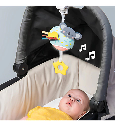 Liviano, plegable y con clip universal, se sujeta fácilmente a cochecitos, cunas o sillas de auto. Forma parte de la colección Koala Daydream, diseñada para estimular los sentidos, la inteligencia emocional y el vínculo afectivo en cada etapa del crecimiento.