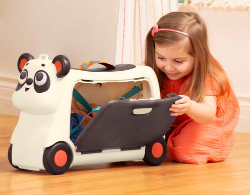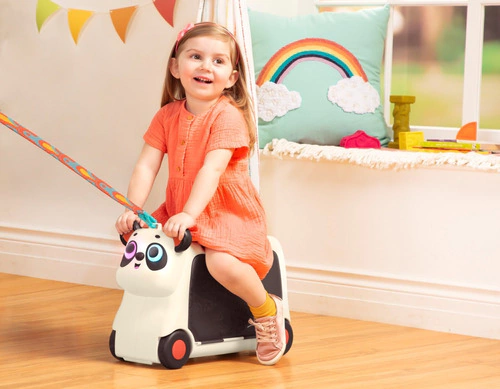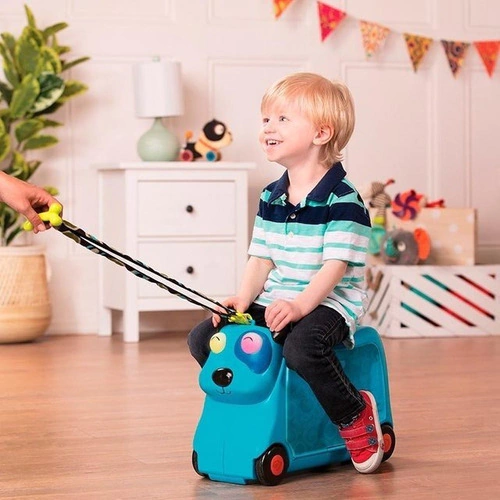 ¡Lleva tus pequeños tesoros a todas partes con Gogo Ride-On! Ya sea que se quede en la casa de un amigo o aborde un avión, este juguete para montar puede funcionar fácilmente como una pequeña maleta. Este equipaje para niños tiene suficiente espacio de almacenamiento para guardar las preciadas pertenencias de un niño e incluye prácticas correas elásticas en el interior que ayudan a que esas pertenencias permanezcan en su lugar. Este pata pata también está equipado con una correa de transporte desmontable y un pequeño asa, lo que facilita que los más pequeños lo remolquen. La pequeña asa funciona como la llave que lo cierra y mantiene todo almacenado de forma segura en el interior. Diseñado pensando en la diversión, que cobra vida con ojos multicolores y luminosos y efectos de sonido. Se requieren 3 pilas AAA. Recomendado para niños a partir de 2 años.